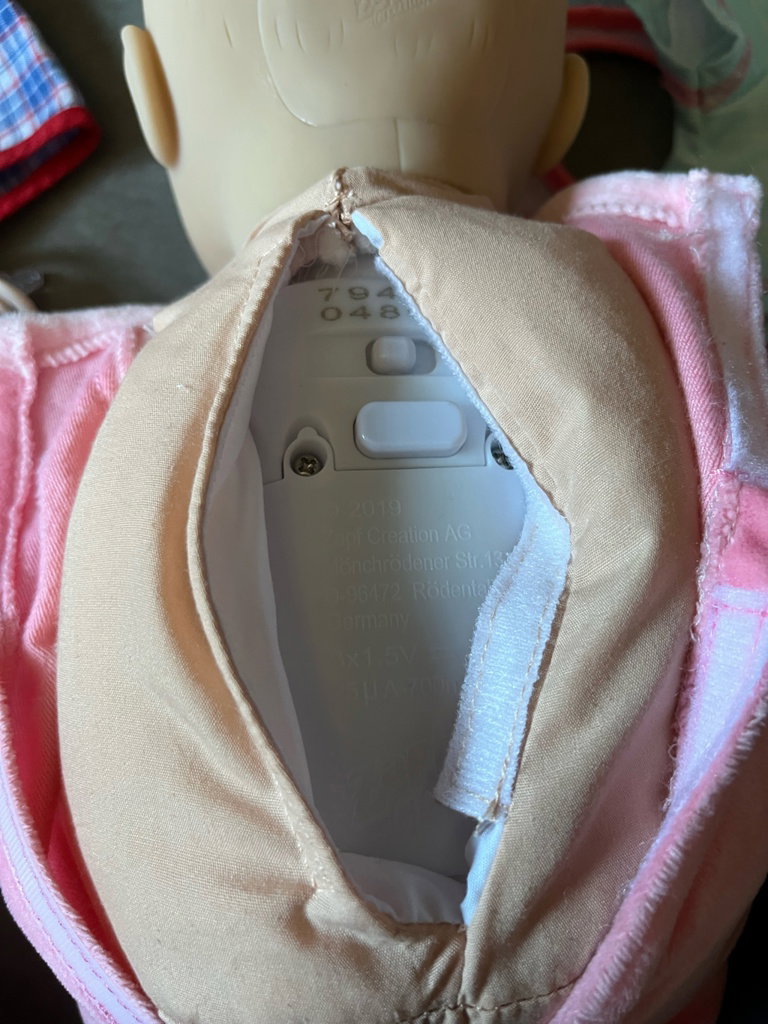 De pop werkt op batterijen en maakt geluid (batterijen niet inbegrepen).