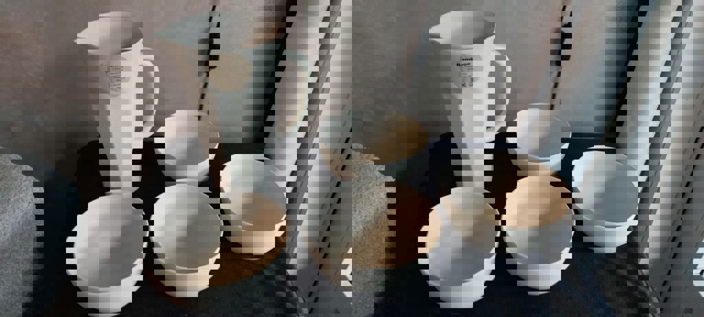 Biologisch Bamboe set Bamboe schenkkan met 4 kommen.