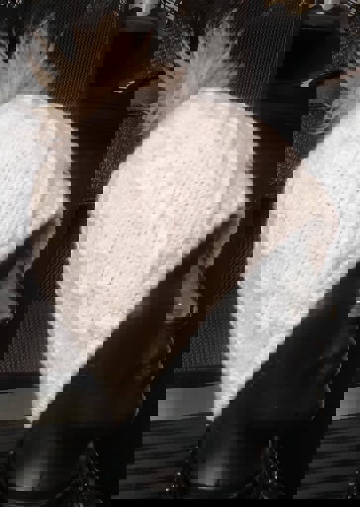 Crème gebreide kabel muts