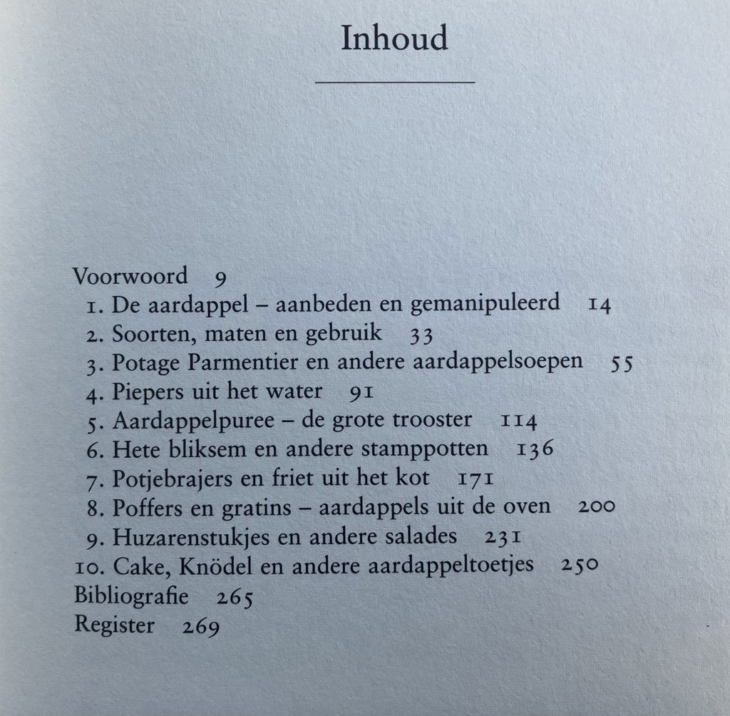 Aanbeden door de Inca's, gemanipuleerd door de wetenschap en bijna over de gehele wereld gegeten: de aardappel. Alma Huisken belicht de geschiedenis en geeft duizend-en-één wetenswaardigheden over deze bijzonder appetijtelijke knol. Ze biedt bewaartips, legt begrippen uit als 'phythopthora', 'blauw' en 'glas' en schetst de nieuwste ontwikkelingen op het gebied van teelt en verwerking. Een inventarisatie zowel van de belangrijkste in Nederland voorkomende rassen als van befaamde en oeroude buitenlandse rassen is in dit boek opgenomen. Van de Hollandse Pimpernel tot de Franse Belle de Fontenay en de Britse Forty Fold. Het boek staat vol met heerlijke recepten: echte huzarensalade, aardappel met kaviaar, friet, kroketjes met vis, afkokers met hachee, poffers uit de oven, gebakken piepers in spekvet, hartige gratins, zoete aardappeltaarten, soepen, puree op z'n Frans, gnochhi uit Italië. raclette uit de Alpen en stamppotten uit de Lage Landen.