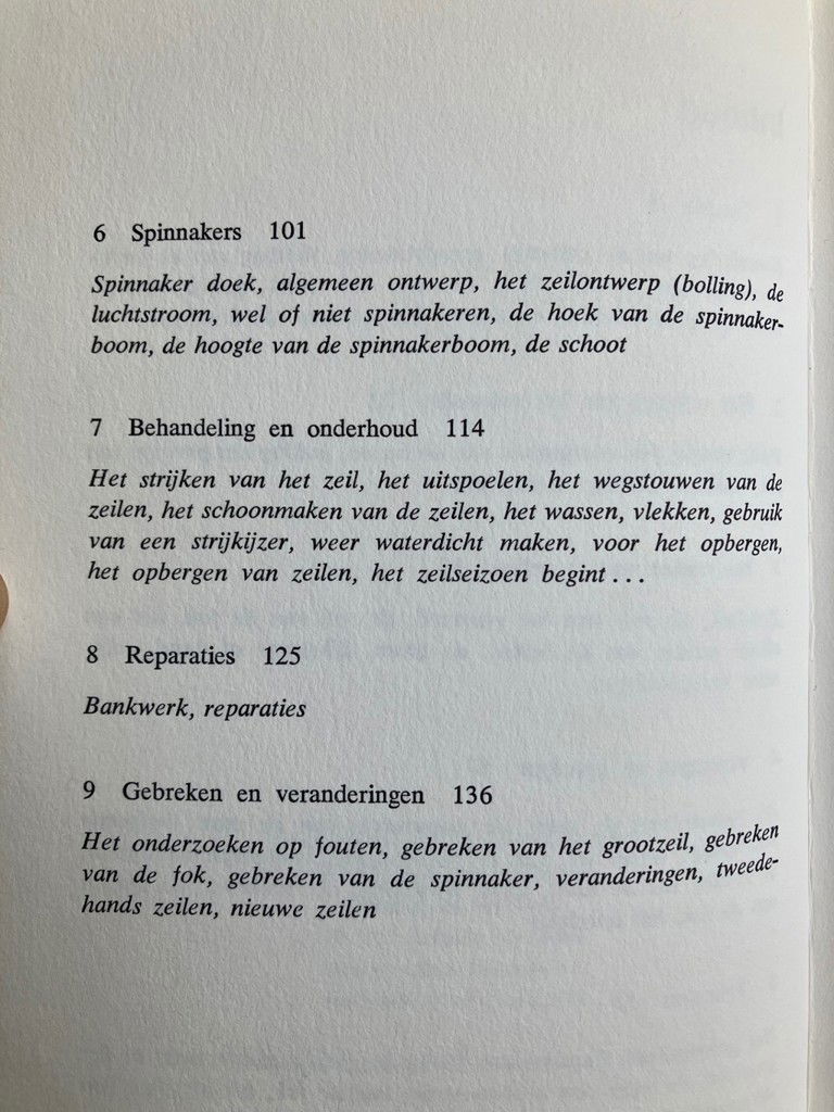 Het wedstrijdzeilen wordt ieder seizoen feller. Het uiterste wordt gevergd van de bemanning, van de boot en van de tuigage. Goede wedstrijdzeilen zijn mede beslissend voor het winnen van wedstrijden en in dit boek schrijft Jeremy Howard-Williams hoe uw zeilen kunnen bijdragen tot een goede finish. De auteur is een autoriteit op dit gebied. Hij illustreert zijn tekst met 25 foto’s en 89 tekeningen, waarmede hij uitlegt hoe de zeilen door de juiste vorm en stand ten opzichte van de wind, het grootste rendement geven en welk het beste zeilprofiel is. Verder schrijft hij over het trimmen van de zeilen, masten, boten, spinnakers, over benadering van de zeilvorm, enz. Tenslotte wijst hij erop dat goede zorg en onderhoud de levensduur van uw zeilen verlengt en uw reparatie-rekeningen vermindert. Geen vraag, die de wedstrijdzeiler kan stellen over wedstrijdzeilen, hun werking, het juiste gebruik en het onderhoud ervan, blijft onbeantwoord in dit veel-omvattende handboek.