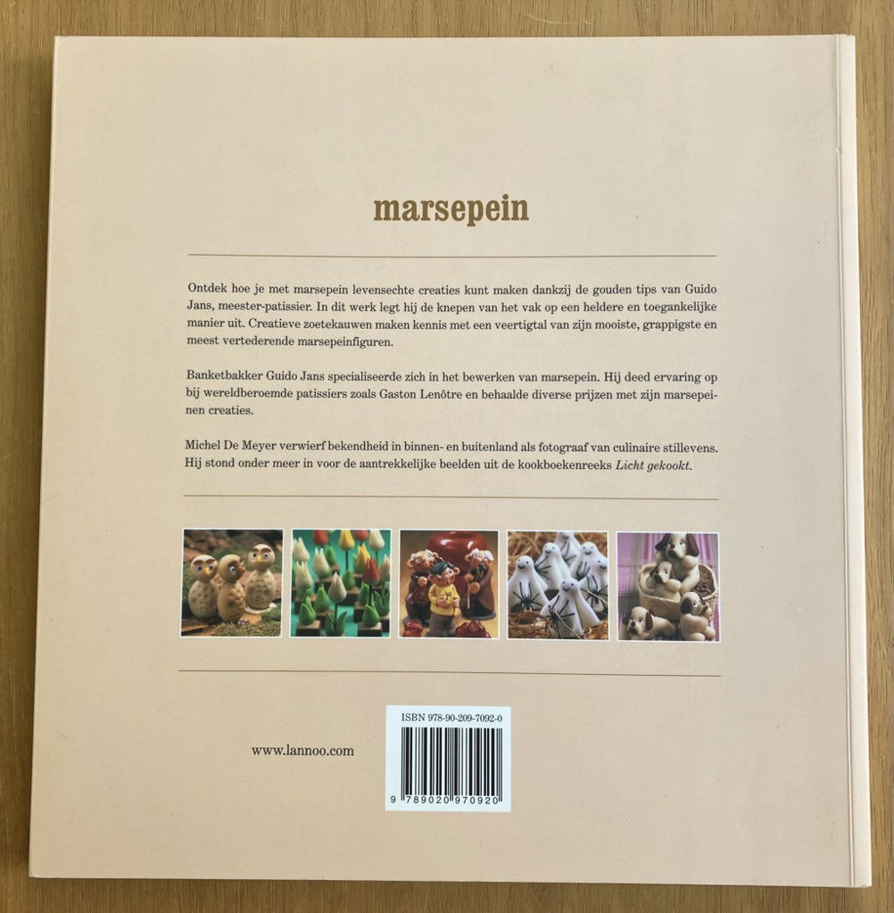 Ontdek hoe je met marsepein levensechte creaties kunt maken dankzij de gouden tips van Guido Jans, meester-patissier. In dit werk legt hij de knepen van het vak op een heldere en toegankelijke manier uit. Creatieve zoetekauwen maken kennis met een veertigtal van zijn mooiste, grappigste en meest vertederende marsepeinfiguren. Banketbakker Guido Jans specialiseerde zich in het bewerken van marsepein. Hij deed ervaring op bij wereldberoemde patissiers zoals Gaston Lenôtre en behaalde diverse prijzen met zijn marsepeinen creaties.