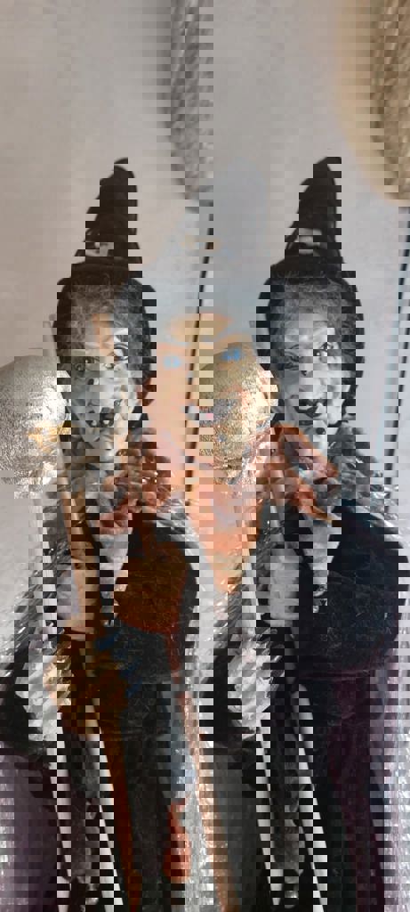 Bruine fluwelen jurk met een glitter mantel