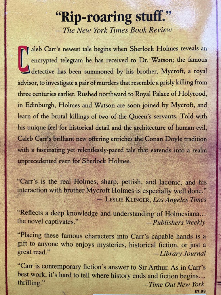 Mycroft Holmes’s encoded message to his brother, Sherlock, is unsubtle enough even for dr. Watson to decipher: a matter concerning the safety of queen Victoria herself calls them to Edinburgh’s Holyrood House to investigate the confounding and gruesome deaths of two young men—horrific incidents that took place with her highness in residence. The victims were crushed in a manner surpassing human power. And while recent attempts on her majesty’s life raise a number of possibilities, these intrigues also seem strangely connected to an act of evil that took place centuries earlier… for indeed, the slaying of David Rizzio, music master and friend to Mary queen of Scots, was an extraordinarily brutal and treacherous act—even for a time when brutality and treachery were the order of the day. Now, the ghosts of Holyrood House are being reawakened by someone with a diabolical agenda of greed, madness, and terror as Holmes and Watson set out to trap a killer who is eager to rewrite history in blood...