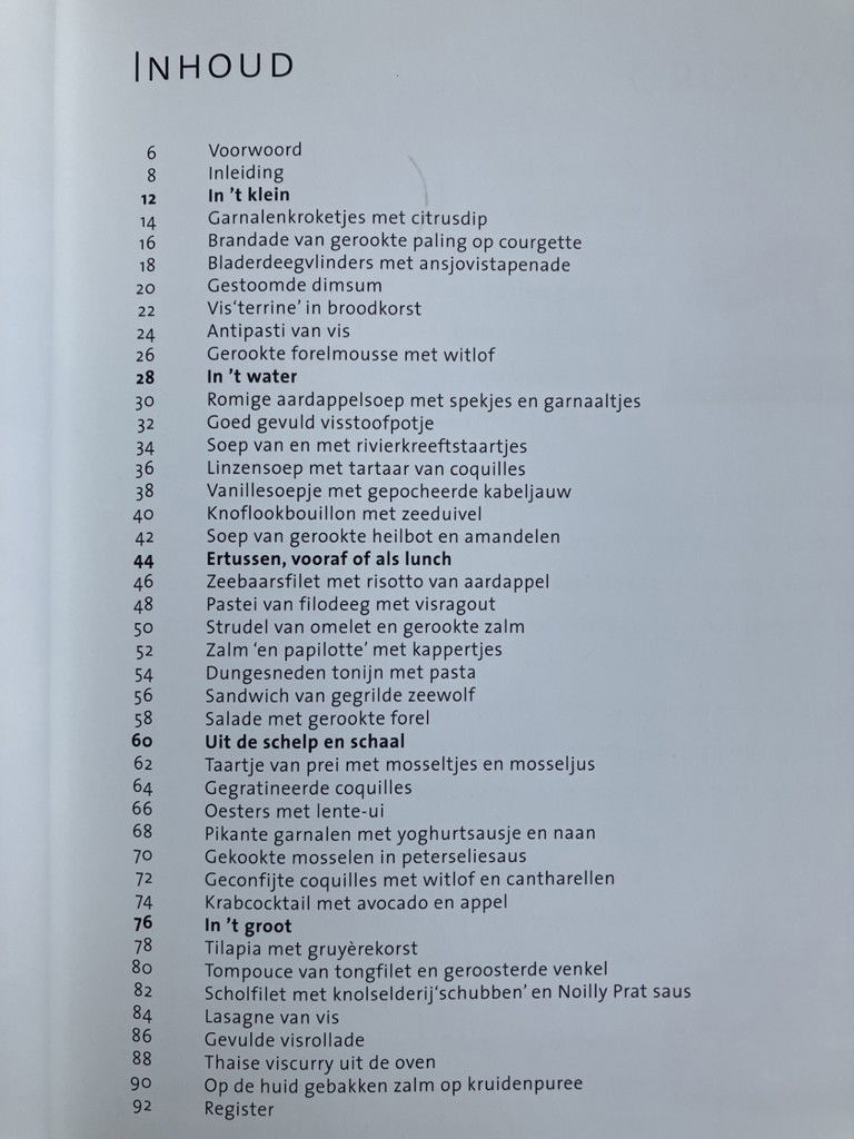 In dit boek laat Francis van Arkel zien dat er met vis echt veel mogelijk is. Van kleine hapjes voor bij de borrel of gewoon tussendoor. Lekkere soepen als lunch of als voorgerecht of soepen die zo goed gevuld zijn dat ze met een stuk boerenbrood een volledige maaltijd vormen. Of juist gerechten voor de kleine trek of als voorgerecht en uiteraard de vis als hoofdmaaltijd. En natuurlijk vergeten we de schaal- en schelpdieren niet, want daar kun je ook alle kanten mee op.